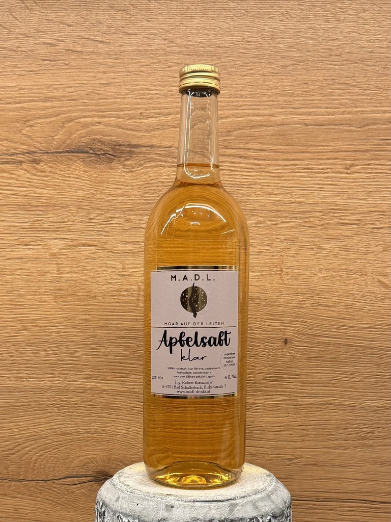 Unser Apfelsaft ist die pure Essenz reifer, handverlesener Äpfel aus der Hausruckregion – teils von unseren eigenen Obstbäumen, teils von nahegelegenen Bauernhöfen. Jeder Schluck erzählt die Geschichte von saftigem Obst, das mit Liebe gewaschen, gepresst und schonend abgefüllt wurde. Erlebe den unvergleichlich frischen Geschmack – als würdest du in einen sonnengereiften Apfel beißen.